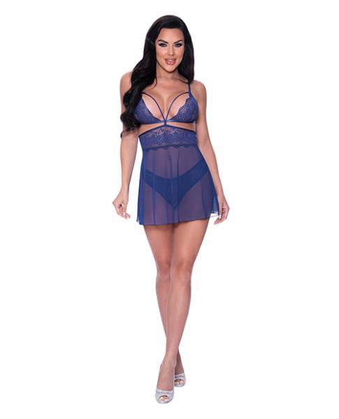 From the Exposed by Magic Silk collection, this style includes: a flowy baby doll featuring elastic adjustable shoulder straps with gold tone sliders, swan hook closure in the back, elastic cross-style straps, and a matching split crotch cheeky panty.Fabric: Lace: 90% Nylon, 10% Spandex Mesh: 84% Polyester, 16% Spandex.Hand Wash Cold. No Bleach. Dry Flat.Sml/Med: 28in.-34in.