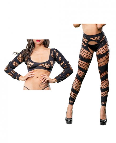 Beverly Hills Naughty Girl Crotchless Mesh & Fishnet Leggings Black O/s