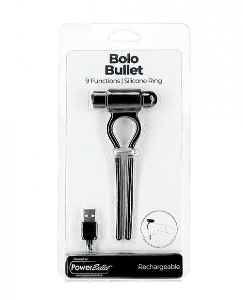 Tie up your package with a customized, secure fit paired with deep and rumbly vibrations! Bolo Bullet is PowerBullet's adjustable cock tie made from premium, body-safe silicone and is designed with comfort in mind.Take full control of erections by simply slipping this device over the penis and balls and using the stylish slider to keep everything in place.Perfect for couples or solo play, the removable bullet features 9 diverse functions that take the vibrations from mild to wild - whatever you're in the mood for! When strapped in the Bolo Bullet, the experience is enhanced for both partners as the bullet becomes a clitoral stimulator.There's no right way to use the Bolo Bullet, as it is a versatile product aimed to maximize pleasure for both partners and provide the perfect customizable fit. Worried about getting wet? Don't be - the Bolo Bullet is 100% waterproof, so go ahead and take playtime anywhere, including the shower or the pool!Travelling is easier than ever with the bullet's built-in travel lock option for ensuring vibrations never randomly go off in your luggage, as well as its USB recharge port for pleasure and power that is ready whenever you are!Key Features: Vibrating Cock Tie. Fully Adjustable. Silicone.Removable Vibrating Bullet.9 Functions.Waterproof.Travel Lock.USB Rechargeable.Dimensions: Length: 5.11" / 13 cm, Width: 2.3" / 6 cm, Height: 0.7" / 2 cm.