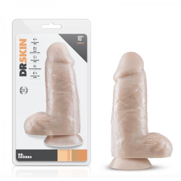 The doctor is in! The Dr. Skin Dr. Chubbs offers you new levels of girth. With 3.25 inches of width and 6.75 inches of insertable length, Dr. Chubbs is ideal for anyone who wants to feel stretched to their limits. It delivers a soft, realistic feel and likelife texture for a better-than-real experience. Stick this toy on any smooth, flat surface to take advantage of its strong suction cup. Dr. Chubbs lab-tested non-porous PVC is body safe and easy to clean: just wash with gentle soap and water, then let air-dry.