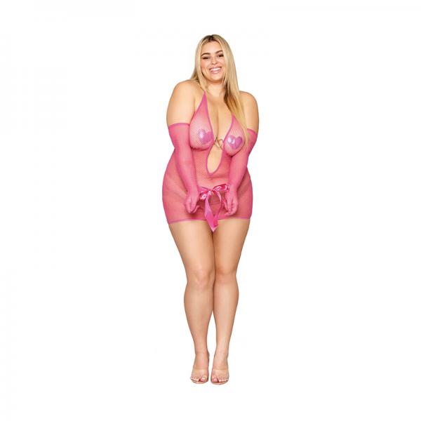 Dreamgirl Metallic Fishnet Seamless Chemise And Matching Glove Restraints Set Peony Queen Size