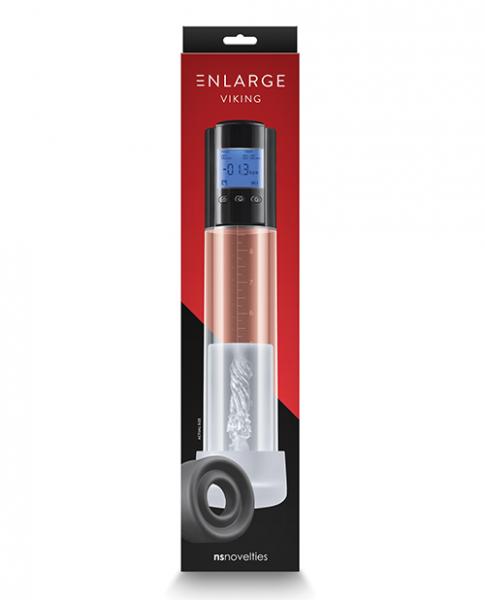 The Smart Viking masturbator penis pump from Enlarge. Customize your vacuum cycles with this quiet, rechargeable pump with LCD screen for continual stimulation. Includes a supple TPE sleeve and a stretchy silicone donut.