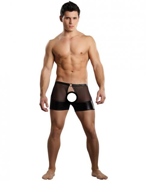 Male Power Specialty Mens Underwear Extreme Double Exposure Black L/XL. Short features pouchless front with metal ring detail, cutout back with metal ring detail and cire waistband and trim. Mne's sizes large to extra large waist 36 inches to 42 inches.