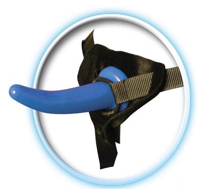 Fetish Fantasy Series Beginner's Strap On for Him give your boy toy the anal satisfaction he's been inquiring about. This slim jelly dong is perfectly sized for his first time. The adjustable, 4 way nylon straps fit most sizes. Harness includes 3 interchangeable O-rings to hold the dong in its place. Free Love Mask included! Dong is made using phthalate free materials Thermoplastic Rubber TPR, nylon straps. Anal probe measures 5.25 inches long by 1.25 inches wide. Girth 3.75 inches. A water based lubricant is recommended. Always clean before and after use. Country of origin China.