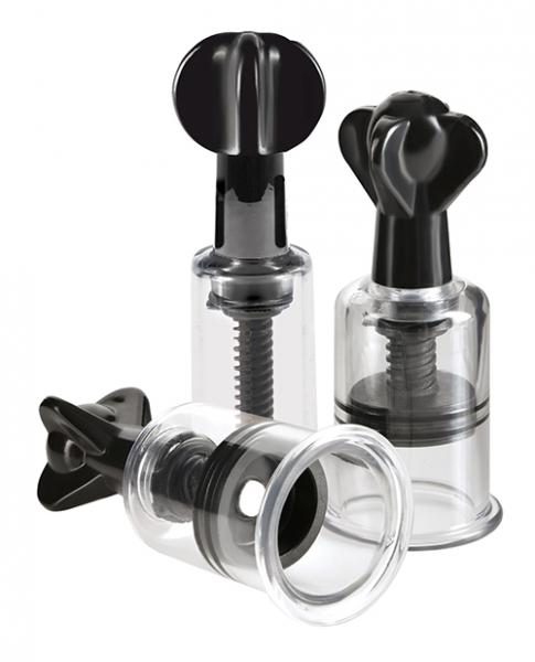 With two powerful nipple suckers and a clitoral cylinder sucker, this combo targets the most sensitive erogenous zones with pump less suction. Place the clear cylinders over nipples and clitoris and lower the suction dials counter-clockwise until they are flush with the skin. The smooth cylinders feel great and stay put.