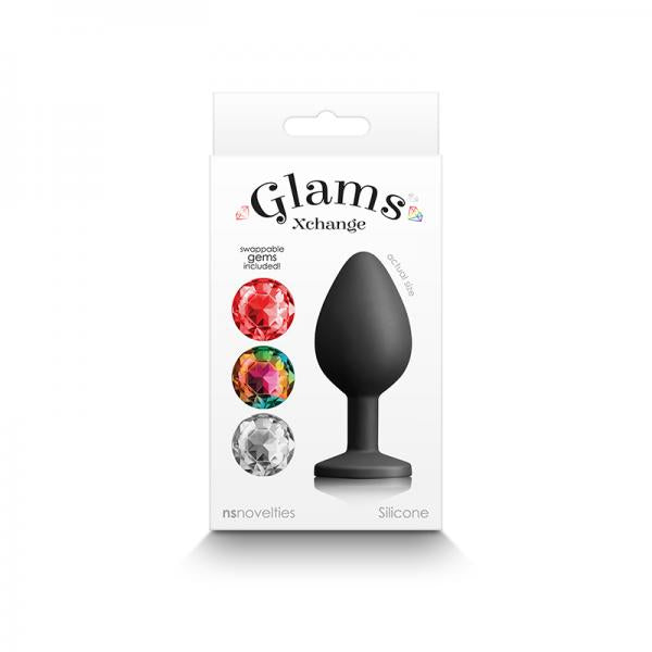 Match your mood and your booty with Glams Xchange. A fashionable accessory to entice and romance. Made from premium grade silicone featuring three interchangeable colorful gems.