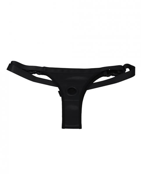 Play your way! This comfy black vegan-leather harness is lined with thin, breathable material. A simple hole in front makes it easy to use with the included slim silicone dong.Hygienic Silicone Dong Included.Adjustable Harness for Many Sizes.Fits Waists From 24 in. (61 cm) to 41 in. (104 cm).