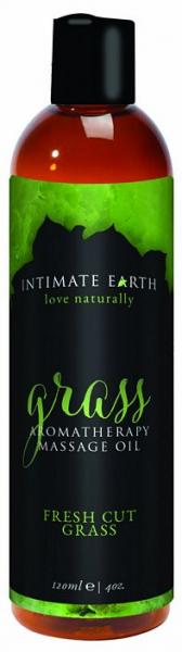 Intimate Earth love naturally Grass Fresh Cut Grass Massage Oil 4 fluid ounces. Massage oil blend contains natural oils and certified organic extracts to soothe aching muscles and create a relaxing setting. Use on the body everyday after bath or shower for silky soft skin. Will not stain sheets.