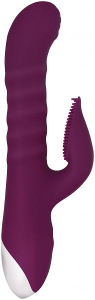 Lovely Lucy Rechargable Vibrator from Evolved Novelties. Satisfy multiple pleasure cravings at once! Two powerful motors deliver an extraordinary combination of sensations, thrusting, spinning, internal and external vibration, not to mention the quivering nubs that dance all over the clitoral shaft platform. Choose from 3 thrusting and spinning speeds, and adjust the 10-speed clitoral shaft to find the perfect blend that makes your toe curling fantasies come true, even under water as it is completely submersible. Clean with Evolved Toy Cleaner and a warm water rinse. Thrusting, spinning dual vibrator. Perfect for internal/external pleasure. Shaft head thrusts and rotates. Rotating beads in shaft for extraordinary sensation. 3 thrusting and spinning speeds, operated together. Main shaft thrusts up to half an inch. Vibrating nubs on clitoral shaft for intense stimulation. 10 vibrating clitoral shaft speeds and functions. Slightly curved main shaft and circular texture on G-Spot point. Stylish white pearl finished handle. Easy to use 2 button control panelLED illuminates buttons when in use. Made from creamy smooth silicone. Detail made from durable ABS plastic. Height 9.5 inches, depth 2.83 inches, width 1.68 inches. Weight 11.4 ounces. Phthalate and latex free. Rechargeable, USB cable included. Waterproof and submersible. 5 years warranty from Evolved Novelties.