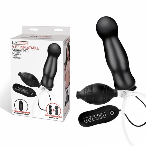 Take your sexual fantasies to new heights with the sensation of an engorging plug that satisfyingly fills you up inside while also stimulating you internally with powerful vibrations. The 4.5â Inflatable Vibrating Plug grows with each squeeze of the attached pump. A separate remote control allows you to enjoy any of the seven rumbly vibration functions of the plug. Featuring a smooth, tapered tip, this 4.5-inch plug is perfect for users of all levels.