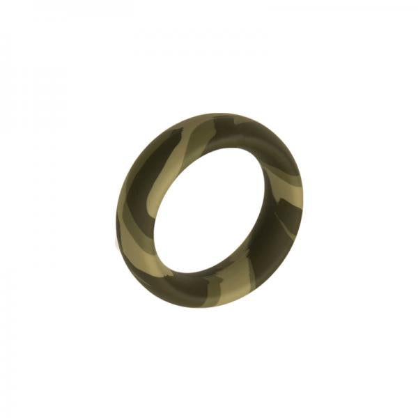 Camouflaged silicone cock ring with an inside diameter of 2 inches.