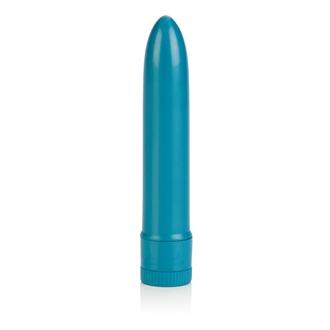 3rd from Right Sky Blue - 4.5 inch light blue multi-speed vibrator with a pearl finish. 1 AA battery.