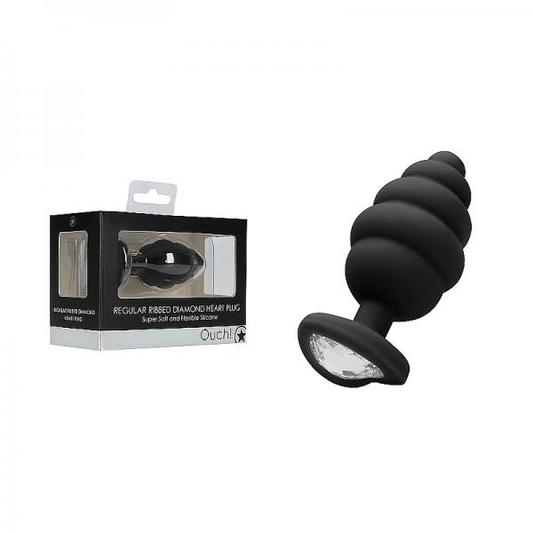 Ouch Regular Ribbed Diamond Heart Plug - Black
