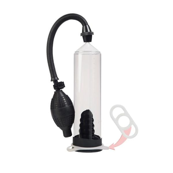 Precision Penis Pump Standard 8 inches by 2.25 inches cylinder. The perfect pump for the first time or advanced pumpers: American Pumpers Association. Clear vacuum cylinder with universal incremental measurements. EZ-Squeeze pressure bulb with push button release valve. Flexible non-crimping air hose. Flanged base with removable soft ribbed donut. Stretchy enhancer with EZ grip handles. Safe and pure for body and pleasure. SAN cylinder, Silicone enhancer, donut, Phthalate-free PVC hose, Rubber bulb.