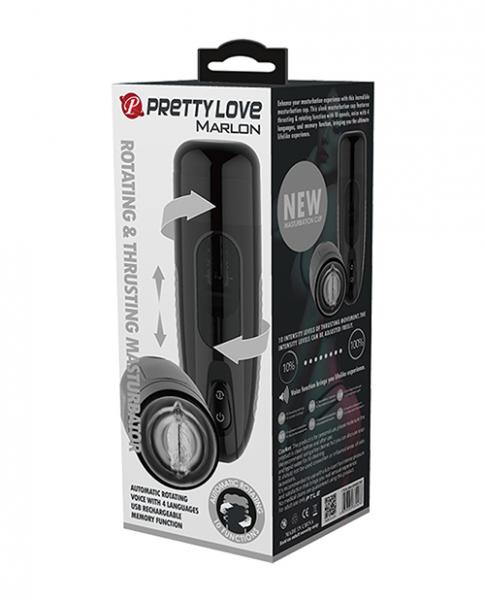Pretty Love Marlon Thrusting and Rotating Masturbator. Experience powerfully intense climaxes with the Pretty Love Thrusting and Rotating Masturbator. The special thruster stimulates the upper, most sensitive part of your penis for out of this world pleasure, taking you from initial arousal all the way to an explosive climax. A powerful motor expertly delivers 10 vibration modes with a memory function, offering a mix of intensity levels and rhythms, and a sexy voice to enhance the pleasure. A high quality design from start to finish, the ergonomic shape feels perfect in your hand. Your thumb rests comfortably over the power and control buttons, and the non-slip sides give you a tight grip. Give this masturbator a try and you will find you long-time solo-play companion! 10 rotation functions. Thrusting. Human Voice. Material: Masturbator Thermoplastic Rubber TPR. ABS plastic storage case. USB rechargeable. Dimensions: overall length 10.43 inches. Length of insertion 2.75 inches. Width of insertion 1.75 inches. 1 year warranty. Pretty Love - Masturbator from Liaoyang Baile Health Care Product Co, Ltd.