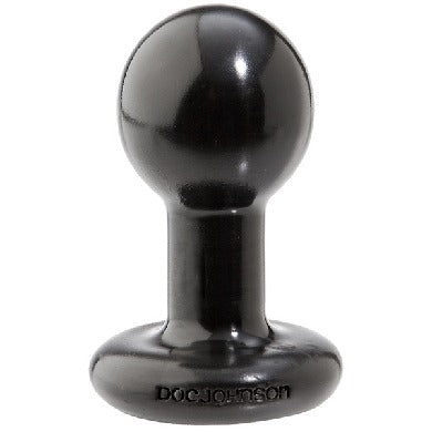 A more well-rounded butt plug, this 3.75 Round Plug, from Doc Johnson, has a uniform spherical head that stretches you out effectively, fills you up fully, and hits all of your sweet spots. The small size is petite and manageable -- and perfect for beginners -- while the body is tapered with a wide safety base. Made from our antibacterial Sil-A-Gel formula and surrounded by slick PVC, this plug is firm yet flexible. Proudly made in America.
