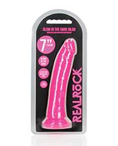 Shots Realrock 7" Slim Dildo Glow In The Dark - Neon Pink