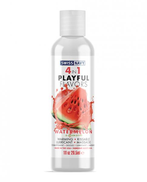 Swiss Navy 4 in 1 Playful Flavors Watermelon 1 fluid ounce from MD Science Labs. 4-in-1 Playful Flavors promise playful pleasure in all its forms! Playful Flavors Watermelon surprises your senses with a tempting blend of sweet flavors.. Apply liberally to indulge in a decadent Watermelon experience. Gently rub or blow on the lush liquid to release an alluring warmth. Or savor slippery goodness when added to a massage or used for lubrication. Playful Flavors 4-in-1 Playful flavors captivates and inspires all of your senses! 1 warming pleasure. Love feels warm. Warmth is comfortable, relaxing, and incredibly sensual. Adding the element of heat to your sexy encounters creates a naturally hot sensation play experience. 2 edible fun. Love tastes good. Create delightful, kissable adventures in truly delicious ways. Engage more of your senses with a fun loving edible experience. 3 smooth lubricant. Love lasts. Sometimes you want the pleasure to last forever, right? This silky, sensual lubricant sustains lovemaking with a long lasting formula. 4 arousing massage. Love every touch. Each caress and stroke excite your senses. Playfully inspire your massage worthy moments with a fluid, effortless glide. 1 + 2 + 3 + 4 = Infinite playful love possibilities! Playful Flavors is lube for your lifestyle. From frisky foreplay to surreal sex, 4-in-1 Playful Flavors makes it easy to explore ways to add more play to your love life. Handy instructions: pour, slather, smooth on. Massage, rub, glide fluidly. Lick, kiss, nibble freely. Share often. Ingredients: Glycerin, Deionized Water, Flavor. Categories: Erotic Body Lotions, Water Based Lubricants, Flavored Lubes, Sex Toys for Couples, Oral Products, Health and Beauty Aids. 2022.