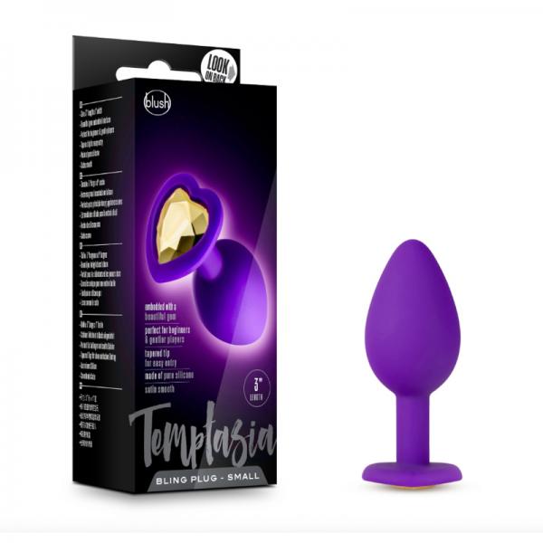 "Your play just got pretty with this sweet Bling Plug! The Temptasia Bling Plug Small features a beautifully designed heart-shaped base, embedded with a golden gemstone. This beginner-friendly Bling Plug has a tapered tip for easy insertion. The tight neck offers gentle pressure and is ideal for extended wear. Or show your bling during your regular erotic play! For the best experience, use with your favorite quality water-based lubricant. Made of platinum cured silicone, Temptasia Bling Plugs are body safe and easy to clean. â¢BODY JEWELRY - Designed with a Heart-Shaped Base & a Beautiful Gold Faux Gemstoneâ¢COMFORT - Tapered for Easy Insertion; Satin Smooth Finishâ¢FLARED - So the Plug Stays Securely Insertedâ¢PEACE OF MIND - Made of Platinum Cured Silicone. Contains No Fragrances, Phthalates, Paraffins, or Latexâ¢SIZE - 3 Inch Length (2.5 Inch Insertable) x 1 Inch Width"