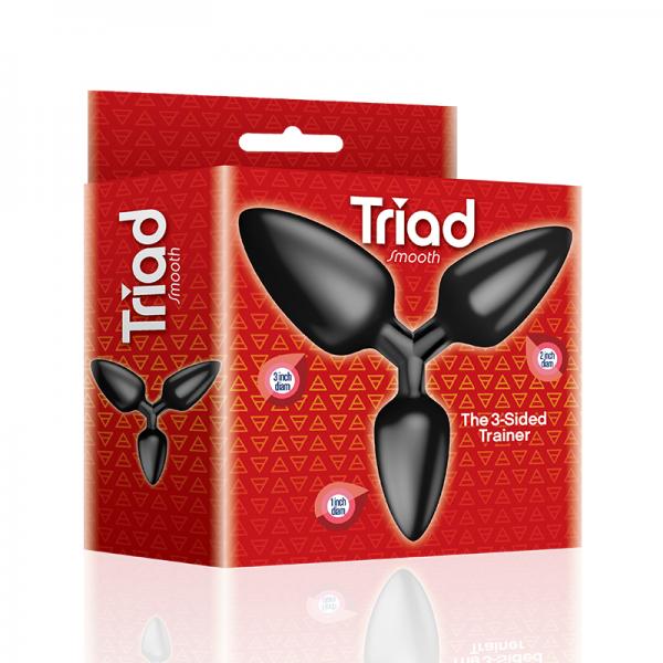 Its the smoothest three-way anal trainer anywhereand we we say smooth, we mean smooth as in cool too. Each seamless plug seamlessly moves to a larger size, and your partner can play with just a turn of the wrist. And all Triads are made from body-safe TPR, which is easy to clean and nonporous, so they stay perfect always. Why go to all the trouble of buying one plug after another when you can do your training all in one place? Thats why everyones tri-ing Triad, only from Icon Brands!