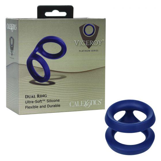 Viceroy Dual Ring Blue from California Exotic Novelties. From bashful beginners to erotic experts, the Viceroy Dual Ring will wrap you tight in pleasure with the ultra plush, stretchy dual enhancer ring. The stretchy, flexible, and sturdy enhancer was created to increase stamina, improve sensitivity and deliver superior erection support. Look forward to an explosive pleasure experience while the dual shaft and scrotum supports holds tight. The premium Ultra Soft silicone is body safe, unscented and phthalate free to keep you most sensitive spots, happy and healthy. The premium cock ring cage has a diameter of 1.25 inches.